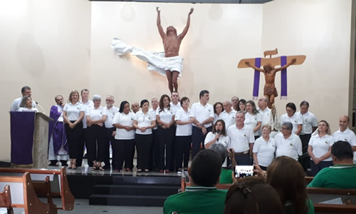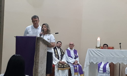 Para a igreja lotada de equipistas com suas camisas verdes, ao final da Missa o CRSRB, Lú e Nelson, fez uma apresentação do Movimento no Brasil – somos 34% do Movimento mundial – onde muitas centenas estão em missão pela única razão de ser equipistas, nem mais nem menos: a busca da santidade! E refletiu sobre como um casal brasileiro (d. Nancy e dr. Pedro Moncau) escreveu uma carta a um padre francês (Pe. Caffarel) sobre um movimento de casais que ele liderava. “Só Deus explica essa ação, que nos permite estarmos hoje aqui em Belém, como equipistas”. O casal Lú e Nelson citou também a atuação pioneira do Pe. Giovanni, ao assumir a primeira Equipe do Pará e liderar o Movimento nesta cidade, em 1973.