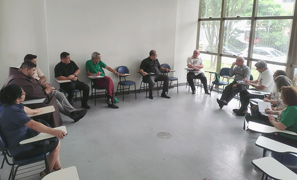 Sacerdotes Conselheiros Espirituais e uma Acompanhante Espiritual, irmã Ermelita, do Setor Abaetetuba, participaram de uma reunião com o SCEP, o Casal Provincial e o Casal Regional.