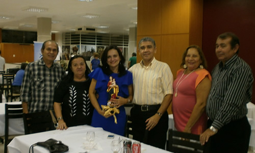 Simone e Nazareno com a imagem que ganharam, ladeados por seus companheiros da Equipe 03C, Norma e Heliomar e Lourdes e Diniz.