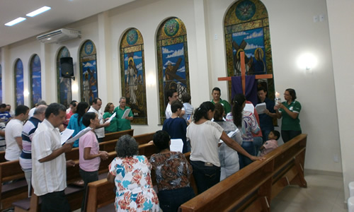 Dezenas de casais equipistas de Belém (Setores A, B e C) e familiares reuniram-se para a Via Sacra das Equipes, este ano realizada junto com a Comunidades Nossa Senhora da Esperança e as Equipes de Jovens de Nossa Senhora, no dia 14/04, na nova e belíssima igreja de N. S. do Loreto, sede da Paróquia com a mesma dedicação, no bairro do Marco, em Belém, cujo titular, Pe. Vanildo Padoin, é equipista, SCE das Equipes 10B e 03C.