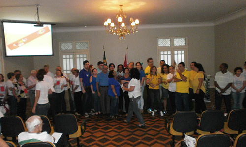 Ao final do “Mutirão 2014” os participantes de todos os grupos, os juízes a equipe de trabalho, em confraternização, festejando a alegria de ser equipista, de ser cristão: