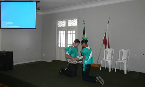 O evento começou com um Momento de Oração, com entronização da imagem de N. S. de Nazaré. Em seguida tivemos a representação cênica por um equipista (Moraes, da Dani, Equipe 14B) do “Discurso de Chantilly” e a apresentação cênica dos PCEs Escuta da Palavra e Retiro, pelo Fábio, da Sílvia (Eq. 13A) e Pe. Lucivaldo (SCE das Eq. 13A e 14B).