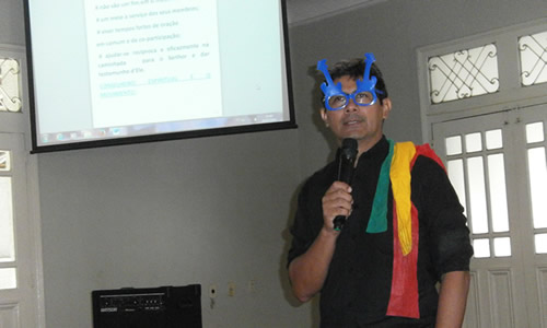 Padre Lucivaldo, com as cores de todos os grupos, no flash sobre a importância dos SCE nas ENS: