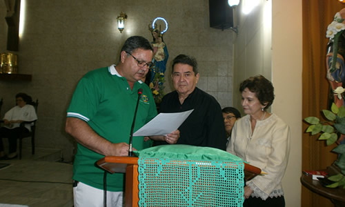 O Evandro, da Leila, CRS-A, faz a leitura do diploma que homenageia o Pai Equipista de Belém/2014.