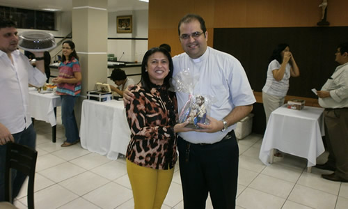 Durante o jantar correu a rifa de uma imagem da Sagrada Família, que foi entregue pelo Pe. Roberto Cavalli Jr., SCE da Região Norte II. A ganhadora foi a Cristina, do Garcia, da Equipe 10B – Nossa Senhora do Ó.