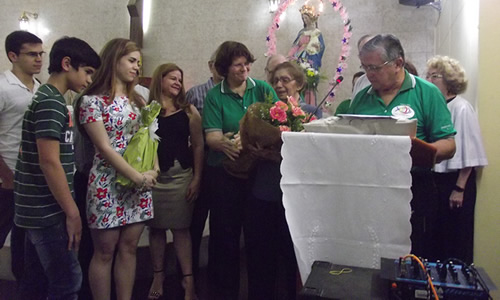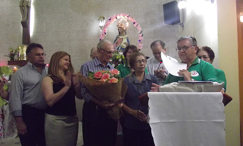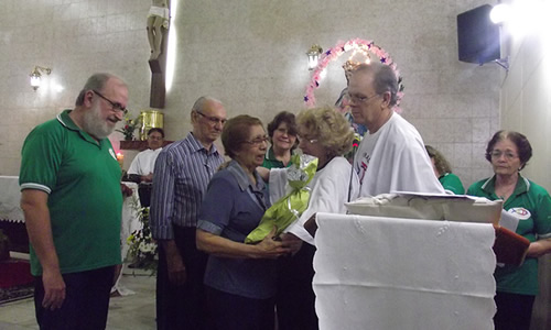Segredo cuidadosamente guardado pelo Ramos, filhos e netos, a surpresa foi grande para a Eulina, que só soube da escolha ao ser anunciada, ao final da Celebração Eucarística. Seu agradecimento foi uma belíssima manifestação de emoção e amor filial: dedicou, entre lágrimas, a homenagem que recebia, à sua mãe, de quem recebeu a fé em Cristo e a formação adequada para ser boa cristã, boa filha e boa mãe. E associou a missão das mães à bela homilia que acabara de ser feita pelo padre Vanildo Padoim (Conselheiro Espiritual das Equipes 10B, 03C e 07C).