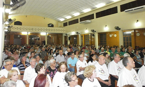 Centenas da equipistas na Santa Missa de maio em homenagem às mães.