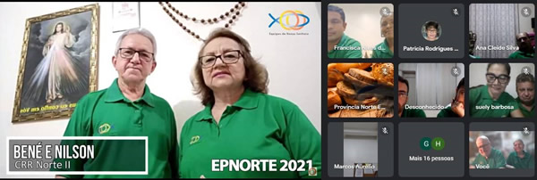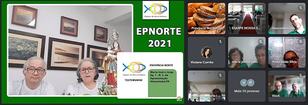 Os Casais Responsáveis pelos 20 Setores, 3 Regiões e desta Província Norte, participaram do Encontro Remoto do Colégio da Província Norte – EPNORTE-2021, no final de semana de 22 a 24/10/2021. O Movimento de Espiritualidade Conjugal Equipes de Nossa Senhora está espalhado em quatro Estados da Amazônia (Amazonas, Pará, Roraima e Rondônia), totalizando 246 Equipes em cidades que vão de Porto Velho a Salinópolis, de Boa Vista a Tucuruí, incluindo Manaus, Belém e Santarém. São 3.171 membros, incluindo casais, viúvas e viúvos, Sacerdotes e Acompanhadores Espirituais (Diáconos, Religiosos e Religiosas).
