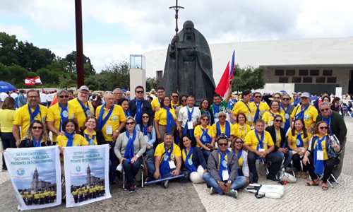 Parte da delegação paraense ao XII Encontro Internacional das Equipes de Nossa Senhora, em Fátima, Portugal, em frente à grande imagem de São João Paulo II, no Recinto do Santuário de Fátima.