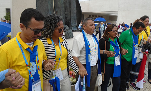 Parte do grupo do Pará na concentração para deslocamento à Cerimônia de Abertura do Encontro de Fátima.