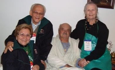 Na foto abaixo, ainda no Encontro de Florianópolis, em 2009, Mariazinha e Miguel (ele chamado pelo Pai em 2018), casal fundador da Equipe 01 de Belém, com Plínio e Mônica – o Plínio já estava doente. Em seguida, foto histórica: social da Equipe 01 de Belém, nos anos 70, Pe. Giovanni e a seu lado o Plínio mais o Cruz e o Geraldo.