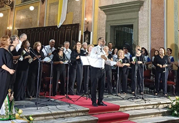 Ao longo desta magnifica noite o Coral executou canções marianas, louvando a Mãezinha do Céu. O casal Dani e Alex (Eq. 04D – N. S. da Alegria) apresentou a música Maria e o Anjo. A cantora Letícia, filha do casal Eliana e Augusto (Eq. 04D – N. S. da Alegria) interpretou a música Todas as Nossas Senhoras. Outro convidado que emocionou foi o coro infantil Itacy Silva, do Conservatório Carlos Gomes, também regido pelo maestro Eduardo Nascimento. A música Mãezinha do Céu teve solo de uma jovem do coro e da Maju, filha da Letícia e netinha de Eliana e Augusto. Ana Cristina (do Mauro José, Eq. 07B – N. S. da Luz) declamou o poema Tributo à Virgem de Nazaré, do José Carlos (da Dinah, Eq. 03A – N. S. da Confiança), composto especialmente para esta Cantata.