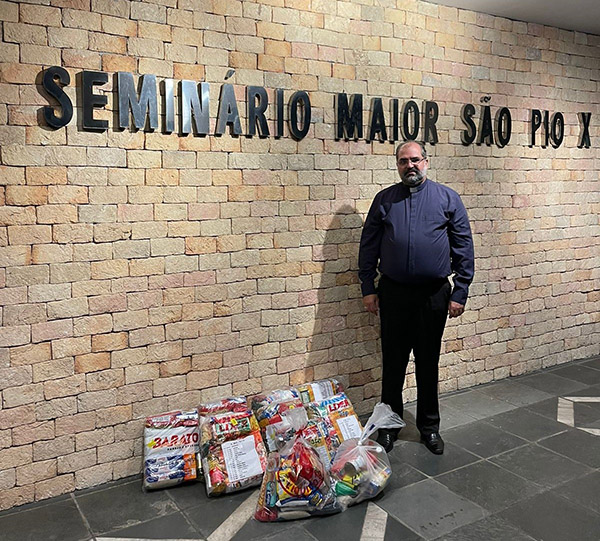 As cestas entregues ao Reitor do Seminário São Pio X, Cônego Roberto Cavalli Jr., SCE das Equipes 03D - N. S. do Sagrado Coração de Jesus e 05B – N. S. de Guadalupe.