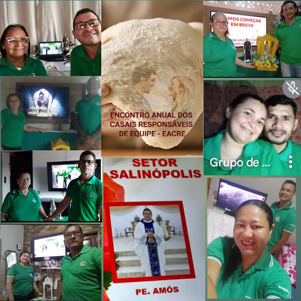 O EACRE – Encontro Anual de Casais Responsáveis de Equipe, realizado ao início de cada ano, é um dos eventos mais importantes do Movimento de Espiritualidade Conjugal Equipes de Nossa Senhora. Nele se encontram todos os Responsáveis das Equipes de uma Região ou Setor, para um momento de formação e informação sobre o Casal Cristão na família e na sociedade. No 34º EACRE da Região Norte II, realizado nos dias 29 e 30 de janeiro, em formato virtual, desde Belém, os 187 casais inscritos receberam as Orientações para o Ano; conheceram o Tema de Estudo e o PCE do Ano; ouviram explicações sobre a Campanha da Fraternidade-2022 e o Ano Amoris Laetitia. Além das celebrações da Santa Eucaristia e de palestras, são realizadas reuniões de grupos de reflexão, plenárias em que os participantes apresentam perguntas aos responsáveis da Província e da Região, e reuniões dos diversos Setores – tudo online, conforme as fotos a seguir.