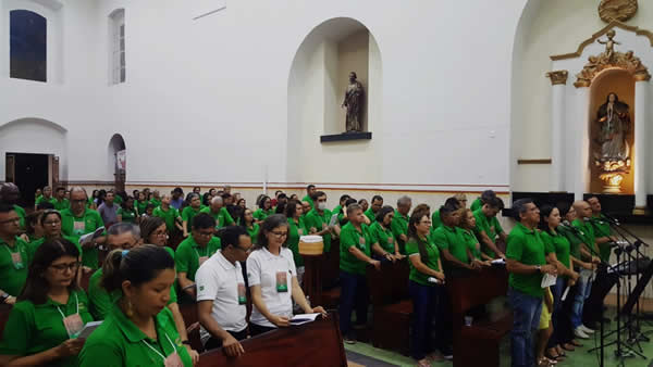 A catedral de Santarém lotada de casais equipistas, com a camisa verde, da Província Norte