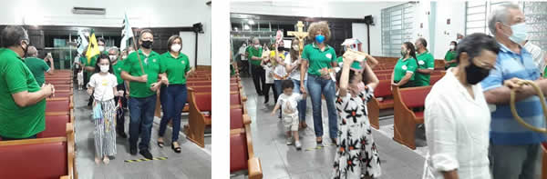 Os Setores A, B e C, reunindo os equipistas de Belém, realizaram em sua Missa Mensal de Outubro, em 02/10/2021, uma bonita homenagem à Rainha da Amazônia, N. S. de Nazaré, cuja festa maior na região acontece no final de semana seguinte. É o Círio de Nossa Senhora de Nazaré que, antes da pandemia, reunia até dois milhões de devotos pelas ruas de Belém. Desde o ano passado essa imensa romaria foi suspensa, o que não impede inúmeras pequenas manifestações de culto à Mãe do Salvador.