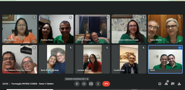 A Equipe do Setor C, Belém, também participou de uma formação sobre a Carta Apostólica Patris Corde, ministrada pelo Padre Edmir, SCE do Setor, no formato virtual. Foi realizada no dia 03 de agosto e contou com a participação de 12 casais. Na foto abaixo o registro de alguns casais participantes e do SCE.