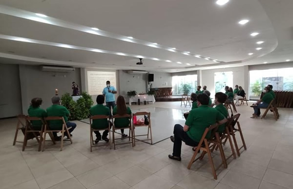 Para a Equipe do Setor A, Belém, foi realizada, no dia 19 de junho, uma formação sobre a Carta Apostólica Patris Corde, do Papa Francisco, ministrada pelo Padre Adilson, SCE do Setor. Ao final da formação foi realizado um Dever de Sentar-se, seguido de um Pedido de Perdão (que foi queimado com incenso), terminando com a bênção matrimonial. Teve a participação de 14 casais. Na foto a seguir os casais, espalhados conforme a exigência de distanciamento, ouvem o Padre Adilson.
