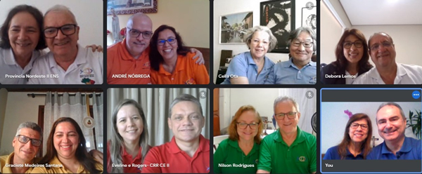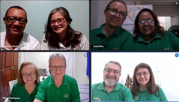 Reunião (virtual) da Província Norte: Casal Provincial Edna e Sebastião (Castanhal); Casais Regionais Zuila e Valdson (Norte III, Santarém), Concinha e Gláucio (Norte I, Manaus), Bené e Nilson, (Norte II, Belém), em sentido horário.