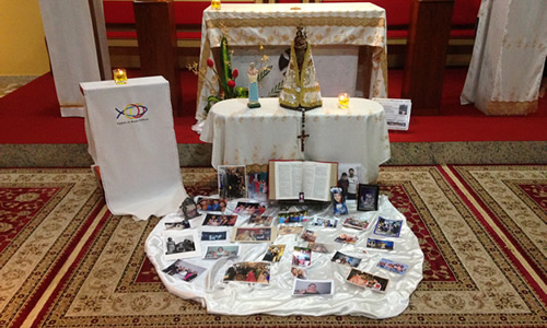O terço rezado pelos participantes foi dedicado aos filhos, utilizando a experiência do Movimento das Mães que Oram pelos Filhos. O terço foi rezado diante de um painel com fotos dos filhos:
