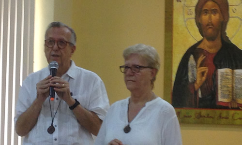 O final do Retiro teve a participação do casal Fundador da Comunidade Sementes do Verbo, Marie e Georges Bonneval, que têm duplanacionalidade (francesa e brasileira), com 48 anos de casados, sendo ele diácono. Ele explicou que conheceu pessoalmente o Padre Caffarel e que se identifica muito com as ENS, unindo as atividades sacramentais de sacerdotes e casais. “O fundador de uma comunidade é como o fundador de uma família”, arrematou ele. A comunidade Sementes do Verbo, fundada em Palmas, Tocantins, com base em experiência que eles trouxeram da Europa, tem hoje sete casas, sendo duas em Palmas e em Belém, Rio de Janeiro, Portugal, Canadá e Bélgica.